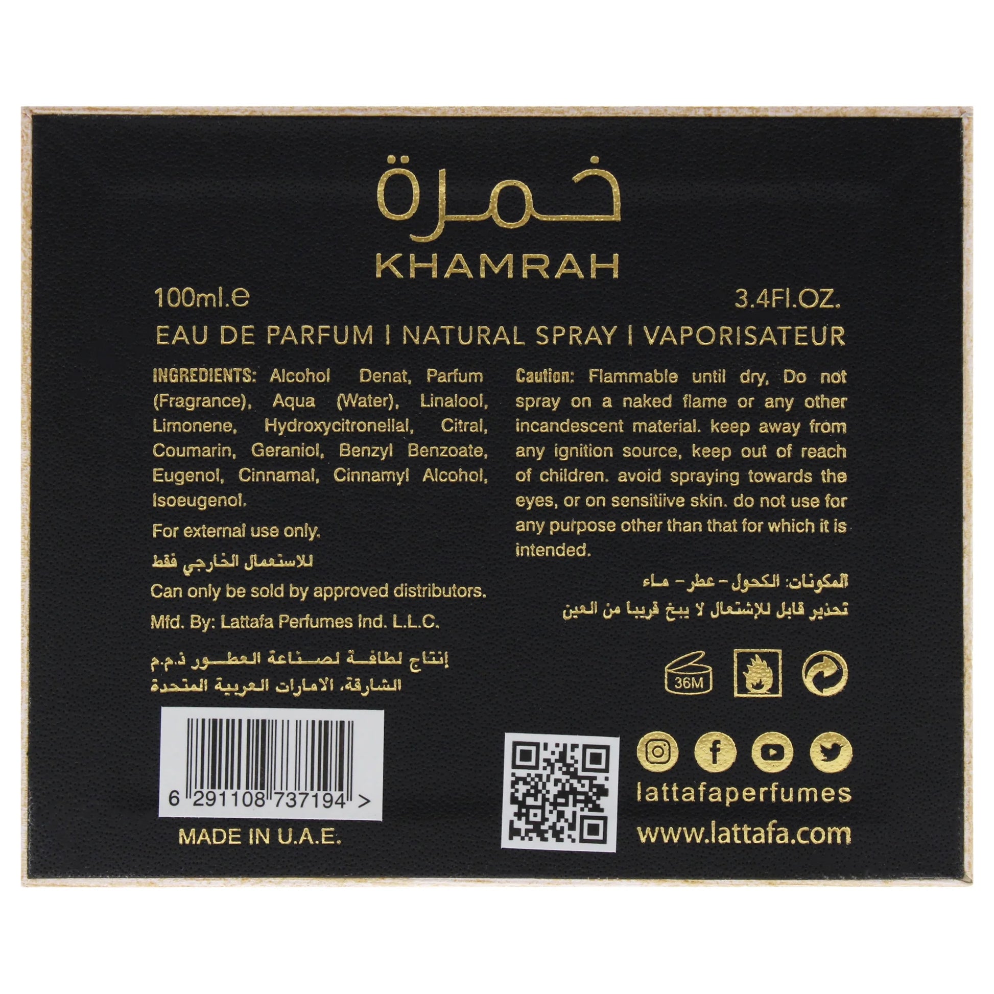 Lattafa Khamrah Eau De Parfum Spray 3.4 oz